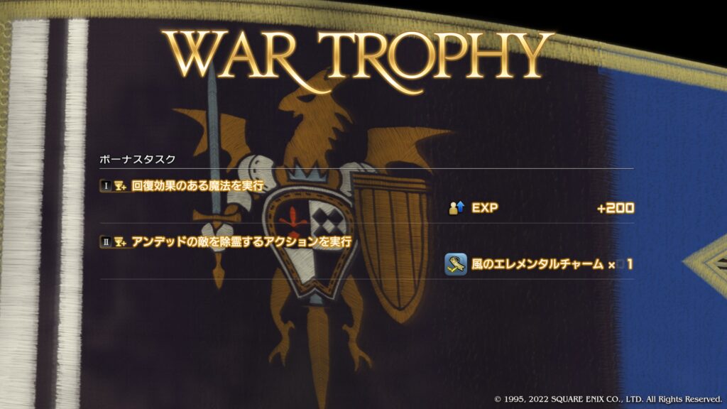 微妙な戦利品である。ボーナスタスクの報酬も今度は風のエレメンタルチャーム。微妙……。