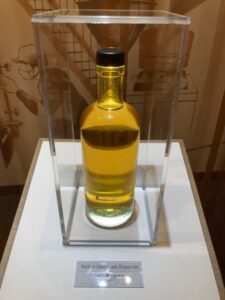 展示されているウイスキーの原酒が、このように美しい色を放っている。