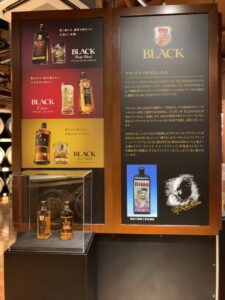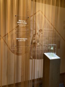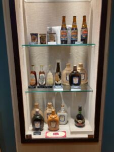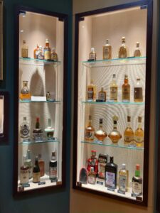 お酒が沢山展示されている。ウイスキーは封をしたまま現物だ。