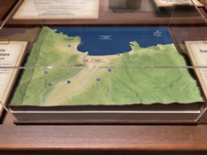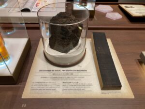 ピートと余市市の位置の模型が飾られている。ピートとは泥炭のこと。