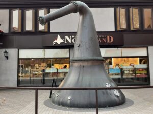 ポットスチルは、このように外にもデーンと展示されている。何度見てもでかい。