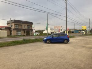 駐車場の写真。既に暗くなり始めている。帰らなければ。