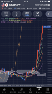 親が寝た後はUSD/JPYのチャートを肴に酒を飲んでいたら、財務省の為替介入が炸裂していた。
