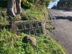 昔はこのブロック塀がずっと続いていたのだ。石垣の後のように少しだけ当時のまま残されている。