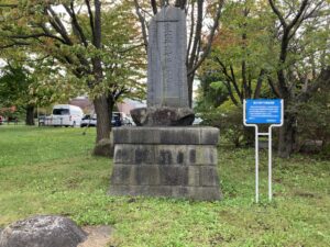 のち旧幕府脱走軍がこの城に拠り箱館戦争の本城となった。築城100年記念に当ってこの碑を建てた。