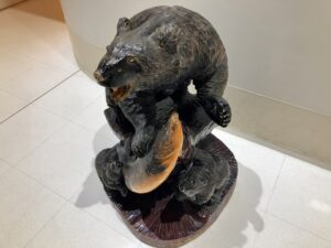 ここまで来るとすごい数の観光客が集まってきている[Google]が幸い駐車場には空きがあり車を停める事ができた。なお、2,3枚目の写真の熊は五稜郭タワーのトイレの前に唐突に飾られていたものである。