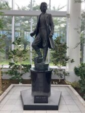 五稜郭タワー[公式]の一階には、旧政府軍の英雄だと思われる人物の銅像が展示されている。順に、榎本武揚[Wikipedia]、武田斐三郎[Wikipedia]、土方歳三である。よく調べてみると、武田斐三郎は五稜郭を設計・建設した人であり、戊辰戦争には特に関係無さそうだった。