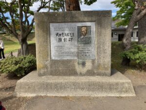 先程、五稜郭タワーに銅像が飾られていた武田斐三郎の顕彰(けんしょう)碑がある。顔だけ触られるのかピカピカだ。